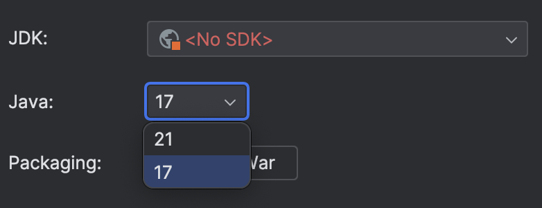 근데 자바는 17과 21 선택지가 두개뿐이더라구요...🤔 보통 저는 자바8이나 자바 11을 사용했었는데 왜 없지...?